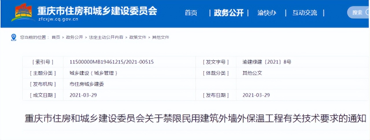 多地已經(jīng)出臺相關政策,禁止使用易燃、可燃材料作為高層民用建筑外墻外保溫材料。